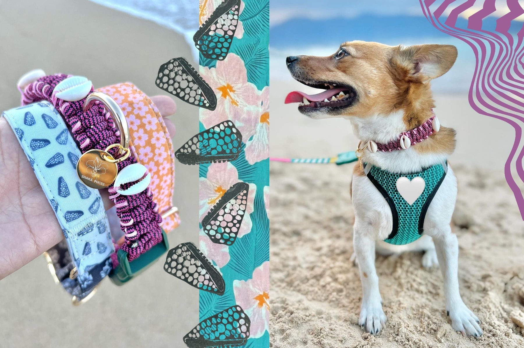 Nothing says Coastal QT like a seashell collar. Handcrafted on Maui in small batches! Waterproof & accented with real seashells, these collars are quick-drying, durable, and chic! Each colorway harmonizes color and texture, offering a fun and refined coastal aesthetic. Use them as a primary collar or statement necklace alongside a training collar or harness!